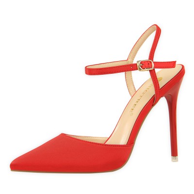 86-2 European and American simple women's shoes with high-heeled satin shallow mouth pointed sexy nightclub slim sandals