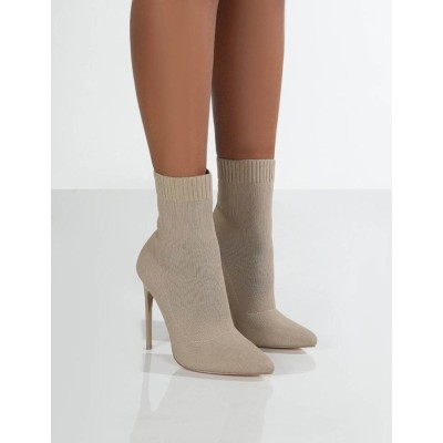 2025 Autumn Winter New Stiletto Heels Fashion Ladies Elastic Knitted Middle Boots Solid Color Pointed Toe Large Size High Heels