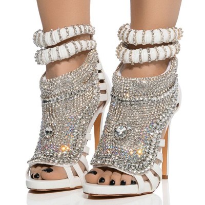 New Shoes For Women White Rhinestone High-heeled Sandals Women's Shoes High Heels Banquet Sandals Women High Heels Footwear