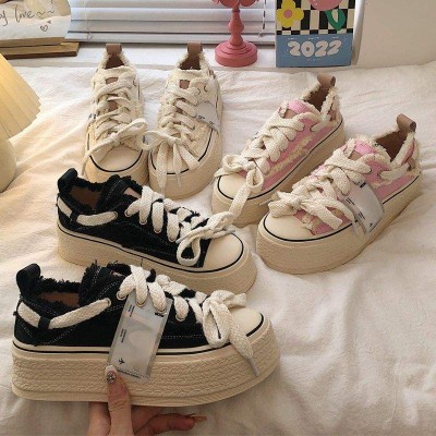 Women's Shoes Female Thick Soled Casual Shoes Fashion Autumn Winter Sports Single Sneakers Woman Lace Up Solid Shoes