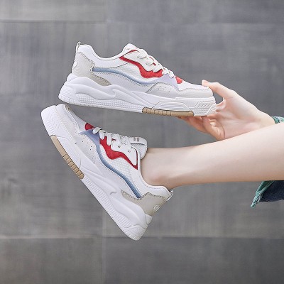 Breathable lace up thick sole sponge cake dad shoes 2025 sports shoes ins super hot mesh red women's shoes