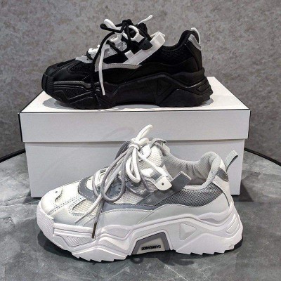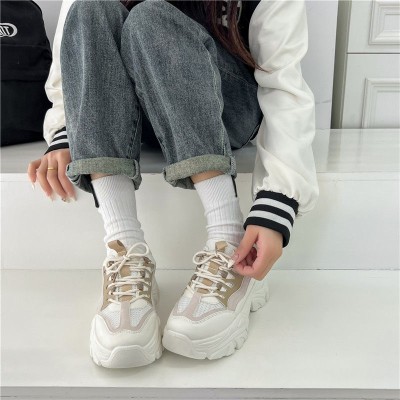 Women's shoes with thick soles Light Cloth New up Sports and Leisure Style Rocking Sole Lace PU Mesh