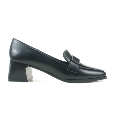 New style office shoes Square toe shoes vintage fashion mid high heel loafers thick metal buckle pumps for women