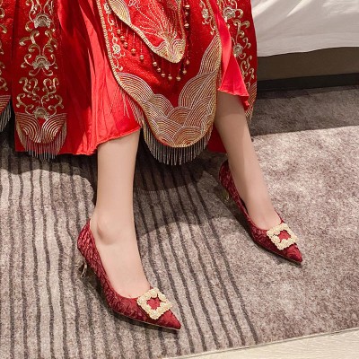 Latest Red Women's High Heels With Rhinestone Elegant Dress Bride Shoes
