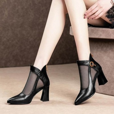 Four Seasons New Leisure Trend Comfortable Coarse Heel Feet Mesh Breathable Temperament Women Elegant Noble High Heel Women