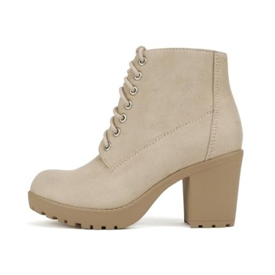Second Lug Sole Chunky Heel Combat Ankle Bootie Lace up w/Side Zipper