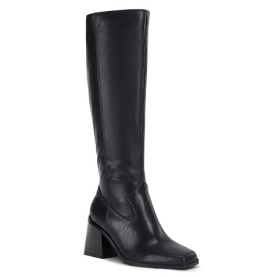 Women's Knee High Boots Wide Calf Square Toe Chunky Heeled Pull-on Boot