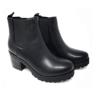 Top Shoes Jaber Ankle Boot w/Lug Sole Elastic Gore and Chunky Heel