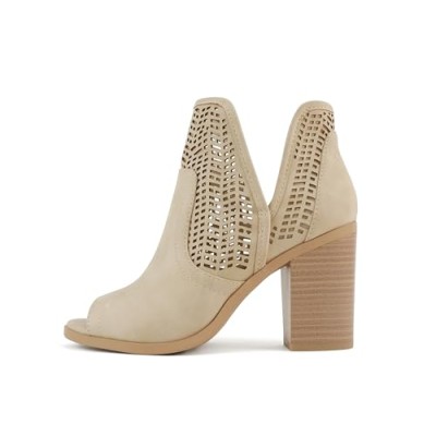 Cathy ~ Women Peep Toe Closed-Back Geometric Cut High Heel Ankle Boots